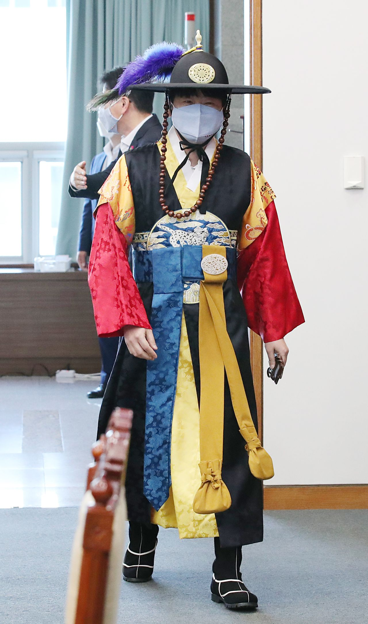 탁현민이 사또 옷 입고 국무회의 등장 구군복 국군 전통의장대 복장을 빌려 한복문화주간