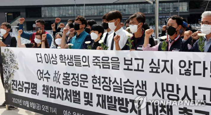 ◇ 김현정> 사실 특성화고 현장실습생 사고가 이번이 처음이 아닙니다. 2017년 제주도 음료공장에서는 프레스기가 오작동하면서 이민호 군이 참사를 당했죠. 현장에 전담지도사 직원을 두도록 하는 등의 학습형 현장실습안을 발표했습니다만 여전히 실행이 되고 있지 않습니다. 대체 또 누가 사망해야 바뀔까요? 우리 아이들의 일입니다. 더 관심 가지고 우리가 지켜봐야 되겠습니다. 여수 현장실습 사망사고. 故 홍정운 군의 친구 익명으로 만나봤습니다.
