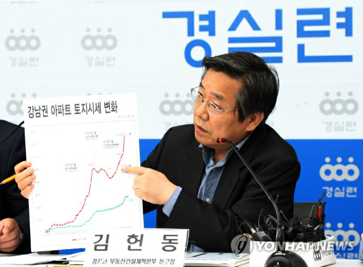 16일 종로구 경제정의실천시민연합에서 김헌동 부동산건설개혁본부장이 비강남 아파트 땅값 상승실태를 발표하고 있다.