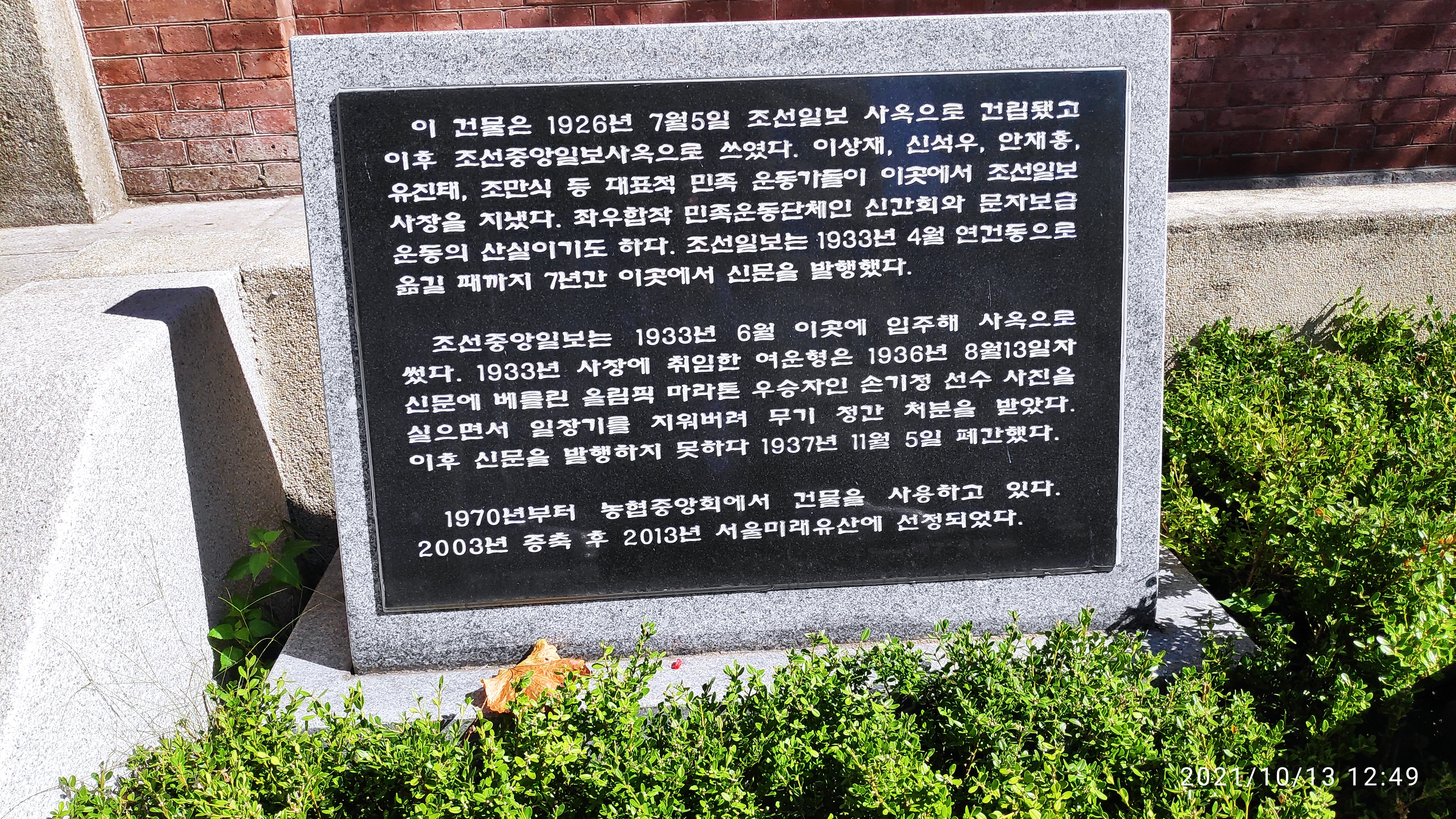 [마음머물다] 1926년 7월 5일 조선일보 사옥 건립 - 조선중앙일보사옥 - 좌우합작 민족운동단체인 신간회 - 문자보급 운동 산실 1970년부터 농협중앙회