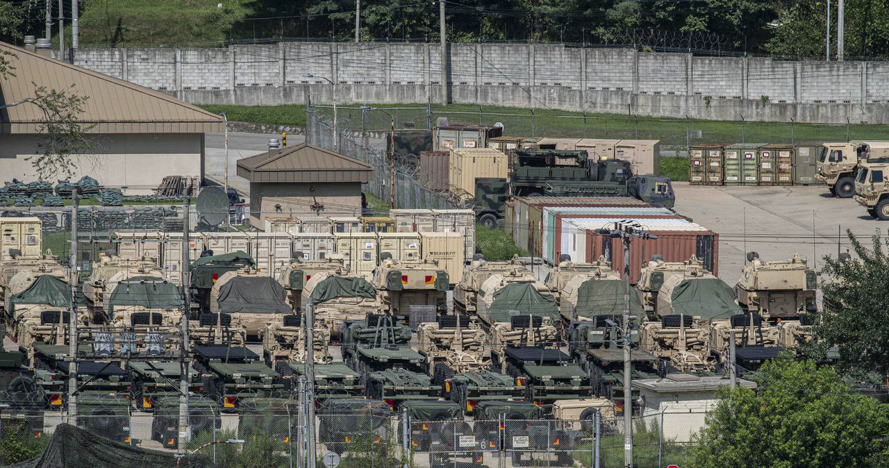 지난 8월 5일 경기도 동두천시 주한미군 캠프 케이시에서 미군 자주포와 차량이 대기하고 있다./연합뉴스