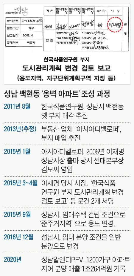 백현동 녹지에 아파트 짓게, 이재명이 ‘용도 4단계 상향’ 직접 결재