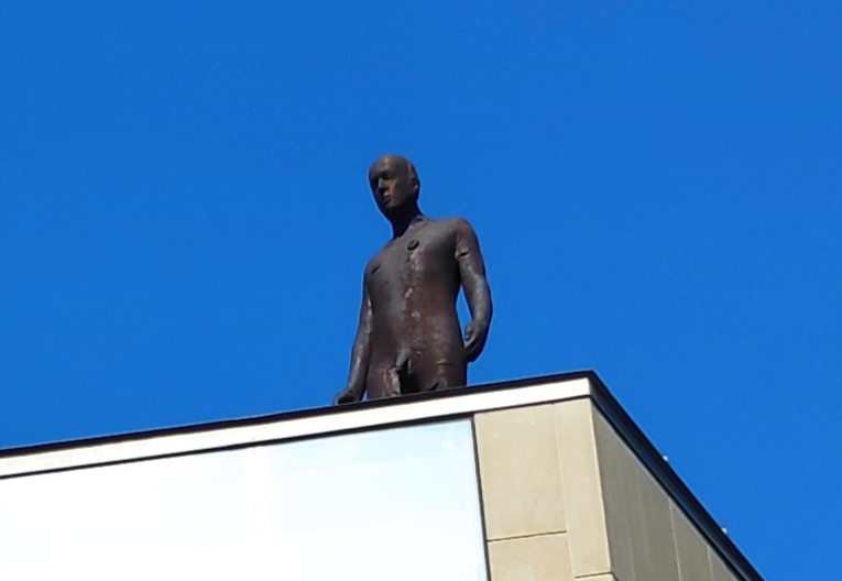 길을 걷다가 건물 위에 있는 동상을 보게 되어 사진을 찍어봤다. 마침 하늘이 파래서 사진 결과물이 나쁘지 않아 좋다.