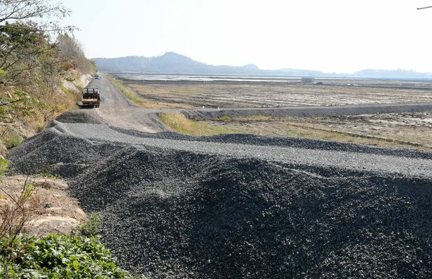 새만금 태양광 산업폐기물 도로 조약돌 만한 검회색 ‘제강(製鋼) 슬래그’가 끝도 없이 깔려 중금속 오염장 산업폐기물로 도로 만들어 공사 현장 환경오염 논란 갈수록 커져