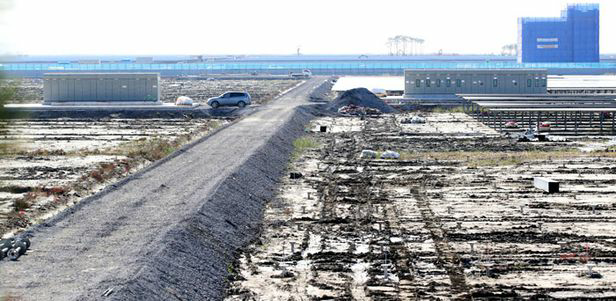 새만금에선 6개월째 육상태양광 발전소 건설이 진행 중이다. 100㎿씩 3구역으로 나누어 총 300㎿급 발전소를 짓는 공사다. 전체 공정률이 88%를 상회할 정도로 빠르게 진행되고 있다. 전기선로 공사만 남겨둔 1·2구역의 공정률은 각각 98%, 95%로 완공을 눈앞에 두고 있고, 3구역도 땅은 전부 닦았고 순차적으로 패널을 설치 중이다. 공사 관계자 등에 따르면, “3구역 공사 현장은 연약 지반 문제로 패널 고정용 지지대가 들어가지 못하면서 일부 공사가 지연되고 있다”고 한다.