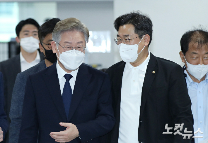 이재명 더불어민주당 대선 후보와 박찬대 의원. 윤창원 기자