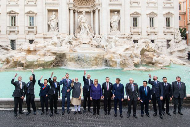트레비 분수 앞에 선 G20정상들, 불참한 文은 어디에... 청 자율 일정이라서 세션 연설 준비에 집중