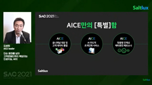 김세원 솔트룩스 상무가 지난달 29일 솔트룩스가 온라인으로 개최한 'SAC 2021' 행사에서 발표하고 있다. [사진=캡처]