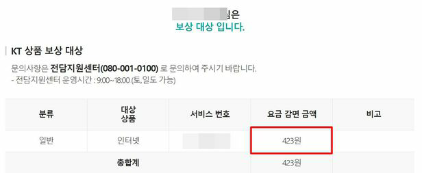 한편 KT 유·무선 인터넷 서비스 장애 관련 보상금액 조회는 18일까지 가능하다.