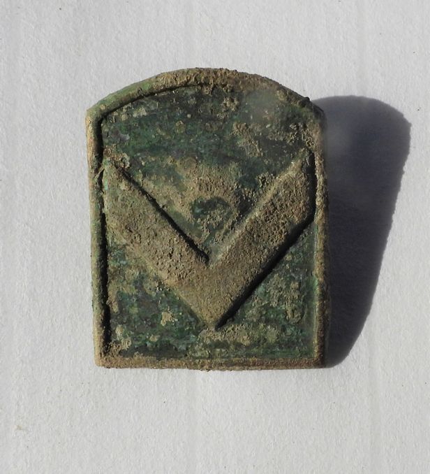 지난달 유해와 함께 백마고지 개인호에서 발굴된 일등병(현 이등병) 계급장. /국방부