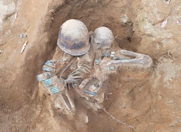 이 유해 인근에는 계급장, 구멍이 뚫린 방탄모, 탄약류, 만년필, 숟가락 등이 발견됐다.