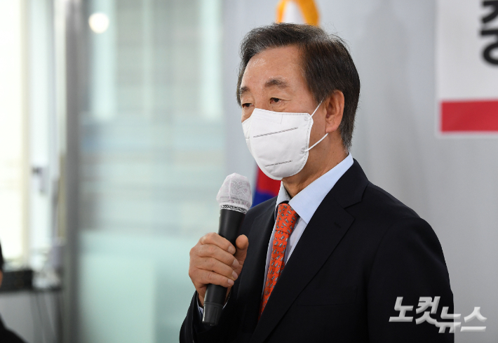 김성태 국민의힘 중앙위원회 의장이 22일 서울 여의도 국민의힘 중앙당사 강당에서 열린 '국민의힘 중앙위원회 주요 임원단 연석회의'에 참석해 개회사를 하고 있다. 윤창원 기자