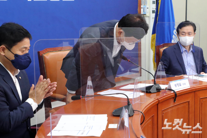 8월 23일 국회에서 열린 더불어민주당 부울경 메가시티 비전위원회 1차회의에서 송영길 대표가 인사를 하고 있다. 윤창원 기자
