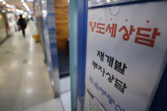 7일 오후 서울 시내의 한 부동산에 붙은 양도세 상담 안내문. 연합뉴스