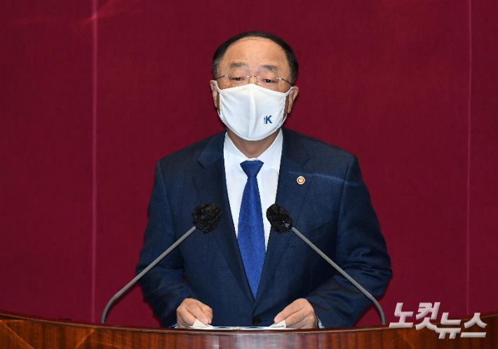 홍남기 경제부총리 겸 기획재정부 장관이 3일 오전 서울 여의도 국회 본회의장에서 열린 2022년도 예산안 처리 관련 제391회국회(정기회) 제13차 본회의에서 제안설명을 하고 있다. 박종민 기자
