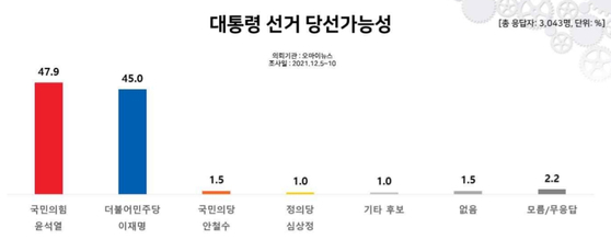 오늘(13일) 여론조사 기관 리얼미터는 오마이뉴스 의뢰로 지난 5일부터 10일까지 전국 만 18세 이상 3043명을 대상으로 진행한 여론조사 결과를 발표했습니다.