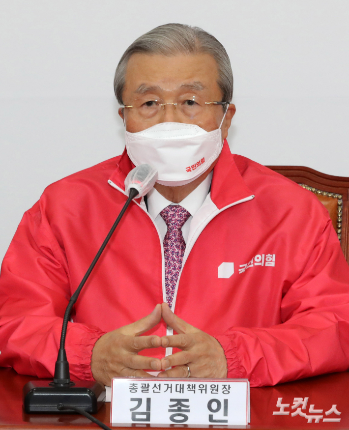국민의힘 김종인 총괄선거대책위원장이 13일 국회에서 열린 중앙선거대책위원회의에서 발언하고 있다. 윤창원 기자