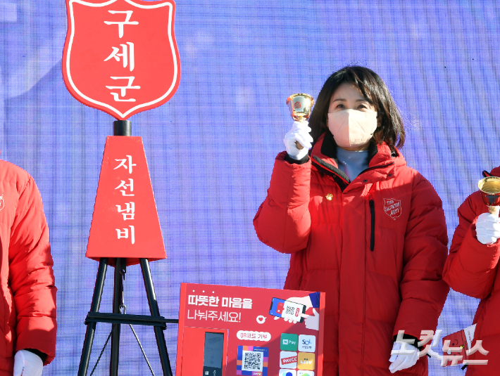 더불어민주당 이재명 대선후보 부인 김혜경 씨가 1일 오전 서울광장에서 열린 '2021 구세군 자선냄비 시종식' 에 참석해 종을 울리고 있다. 황진환 기자