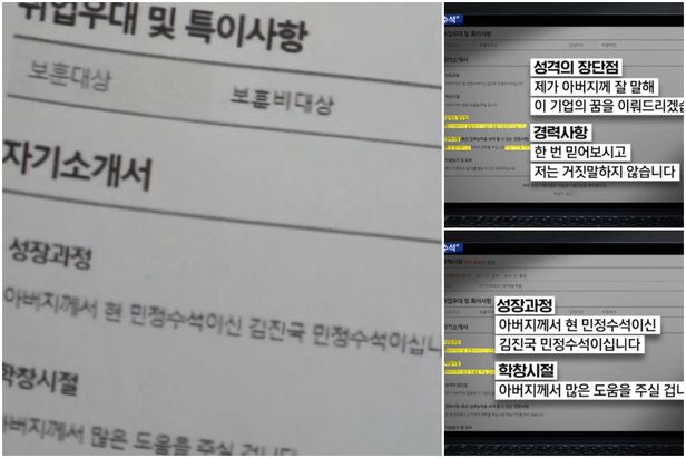 아버지가 민정수석, 도움 주겠다 靑김진국 아들의 입사지원서