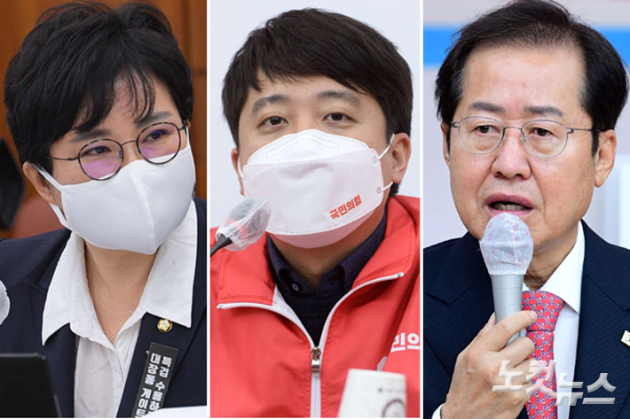 좌측부터 조수진 단장, 이준석 대표, 홍준표 의원. 윤창원 기자