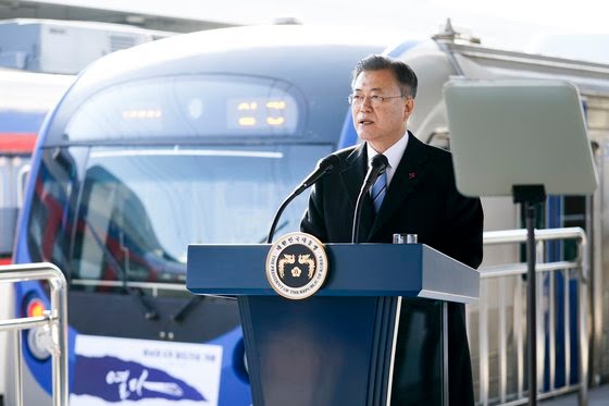 문재인 대통령은 28일 부산ㆍ울산ㆍ경남(부울경)과 경북을 잇는 동남권 4개 철도 개통식이 열린 울산 태화강역을 방문해 "동남권은 2029년 가덕도 신공항까지 개항되면 동북아 8대 메가시티로 발