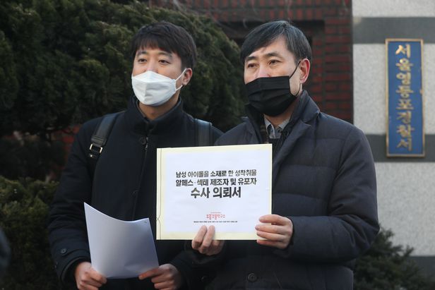 지난 1월 19일 오전 서울 영등포구 영등포경찰서에서 국민의힘 이준석 대표(왼쪽)와 하태경 의원이 알페스 제조자 및 유포자 수사 의뢰서를 들고 기자회견을 갖고 있다. /장련성 기자