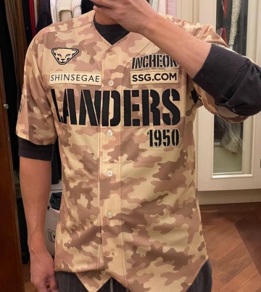 정 부회장이 소셜미디어에 자사 야구단인 SSG랜더스의 유니폼을 입고 올린 사진. 해당 게시물엔 '이것조차도 불편러들이 있다는 현실이 개탄스럽다 ‘라고도 썼다.