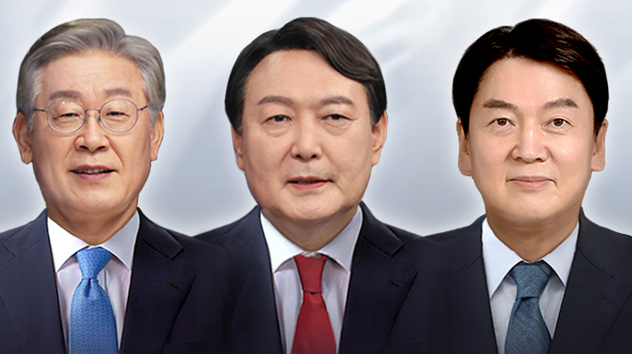 국민의당 안철수 대선 후보와 국민의힘 윤석열 대선 후보(왼쪽)·더불어민주당 이재명 대선 후보(오른쪽). 윤창원 기자