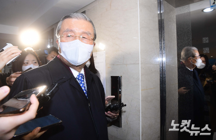 김종인 국민의힘 전 총괄선대위원장이 10일 오후 서울 종로구 자신의 사무실을 찾은 국민의힘 이준석 대표와 면담한 뒤 나서고 있다. 국회사진취재단