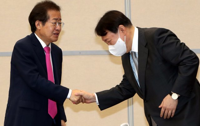 尹 만난 홍준표 2가지 해소되면 선대본 상임고문 참여 尹 先정비, 後과세 과세 유예 시사 홍준표 처갓집 비리 엄단 선언 조건 내걸어 尹선대본 합류말라에 홍준표 그래도 양아치보단 낫다