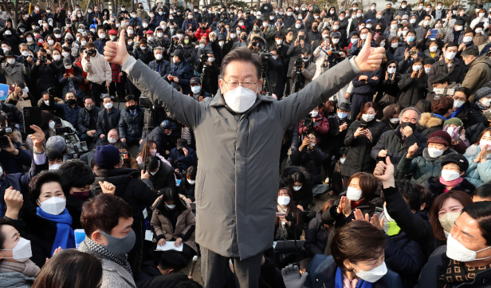 이 후보는 또 윤 후보의 발언을 인용해 "'이재명은 확실히 범죄자가 맞다', '책임을 묻겠다'고 누가 그랬나"며 "과거에는 없는 사실을 지어내 국가권력을 남용해 탄압하진 않았는데 이번엔 제가 지면 없는 죄도 만들어 감옥갈 것 같다"고 비판했다.