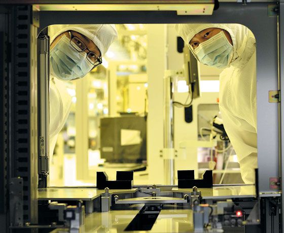 SK하이닉스 직원들이 반도체 생산라인을 점검하고 있다./sk하이닉스