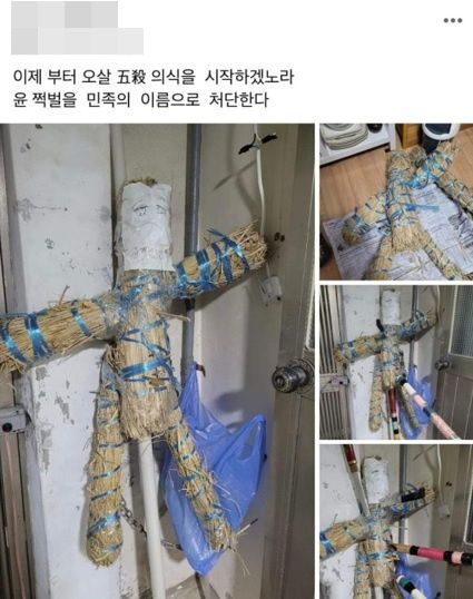 “사지 찢어야”… 李캠프 인사, 윤석열 밀짚 인형 찌르며 저주 의식