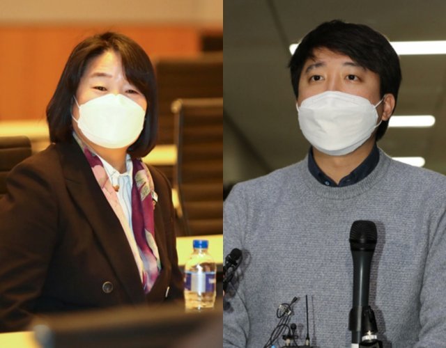 무소속 윤미향 의원(왼쪽)·국민의힘 이준석 대표. 사진공동취재단