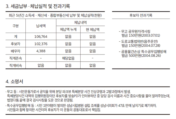 선관위는 “우리는 후보들이 제출한 공보물이 지정한 요건을 갖췄는지만 확인한 후 발송할 뿐, 공보물 내용에 관한 책임은 후보 측에 있다”고 했다.