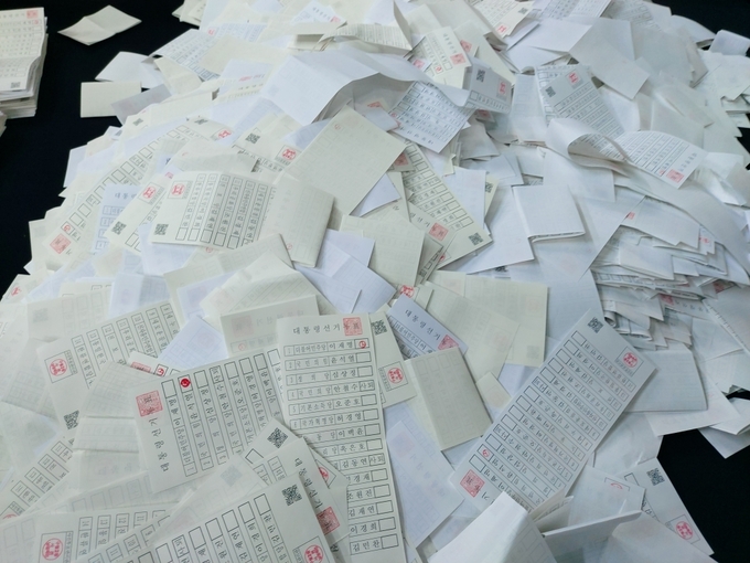 사전투표했는데도 투표용지 또 주더라 부실관리 논란 선관위 불신에 곳곳서 실랑이 도장 왜 절반만 찍히나 항의 개표 땐 연노랑 용지 나와 소동