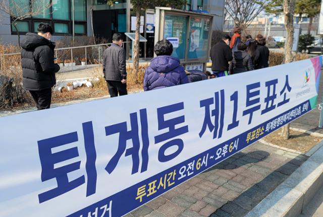 제20대 대통령선거일인 9일 강원 춘천시 퇴계동 행정복지센터에 마련된 투표소에서 시민들이 한 표를 행사하고자 줄지어 서 있다. 연합뉴스