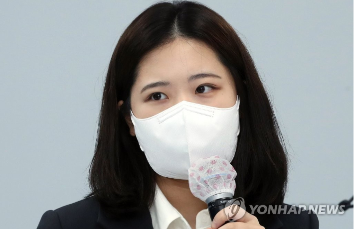 (서울=연합뉴스) 더불어민주당 공동 비상대책위원장으로 임명된 박지현 전 선대위 여성위원회 부위원장. 사진은 박 공동위원장이 지난 2월 9일 이재명 대선 후보와 디지털 성범죄 근절을 위한 대담을 하는 모습. 2022.3.13 [연합뉴스 자료사진] uwg806@yna.co.kr 연합뉴스