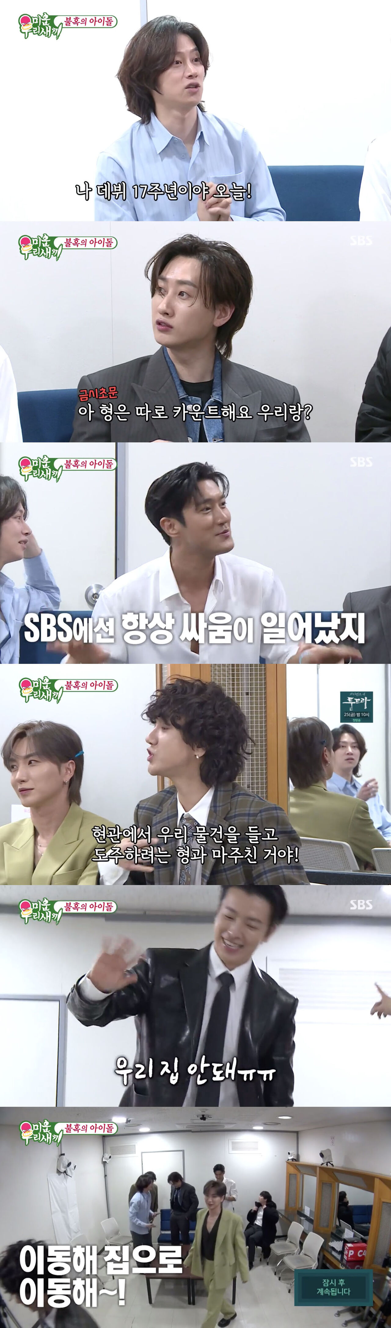 한창 과거 이야기를 하던 멤버들은 추억에 젖었다. 멤버들은 "매번 SBS에 오면 사건이 터졌다. 항상 싸움이 일어났다"라며 "요즘에는 너무 평화로운데 신동과 예성의 리매치 어떠냐?"라고 했다. 그러자 신동은 "39kg이랑 100kg이 싸우면 어떡해. 그게 말이 되냐"라고 손사래를 쳤다.