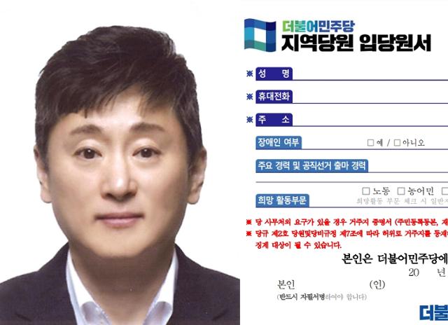 송제용 마포문화재단 대표이사(왼쪽)와 더불어민주당 가입 신청서. 한국일보 자료사진·민주당 홈페이지 캡처