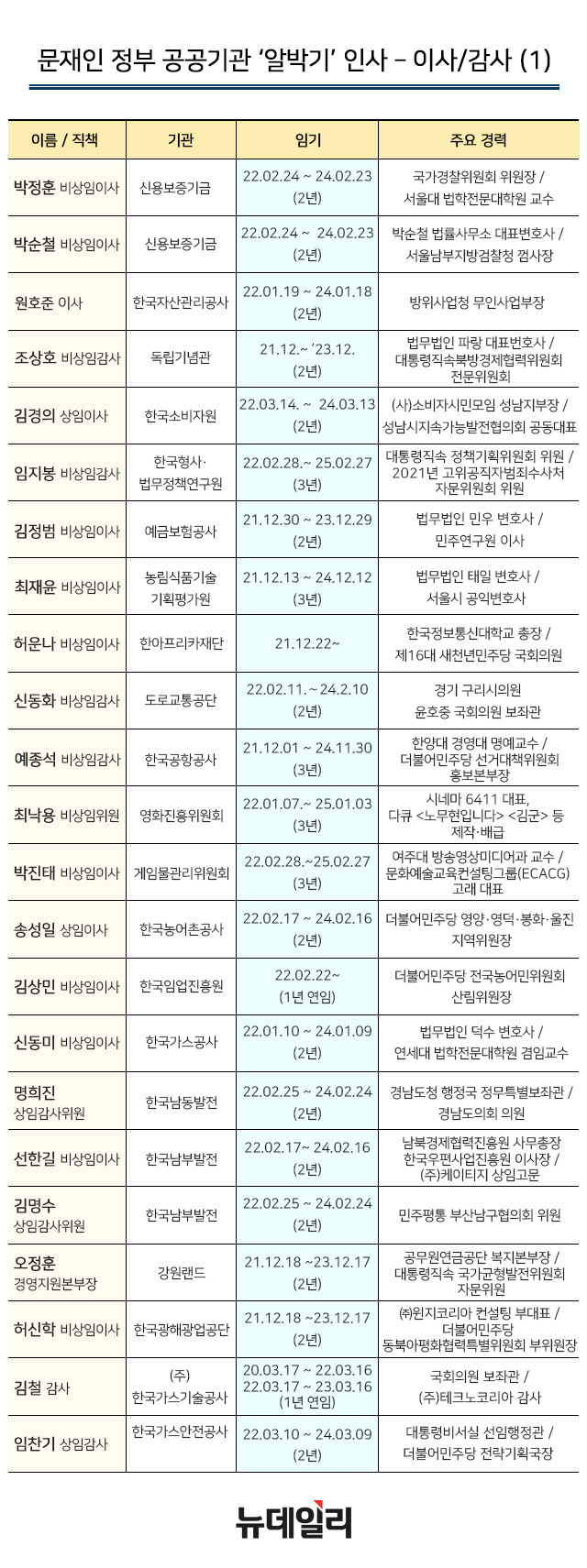 앞서 김기현 국민의힘 원내대표는 지난 24일 문재인 정부 공공기관 알박기 인사 현황을 공개한 바 있다. 그러나 해당 인사들의 실명은 공개되지 않았다.