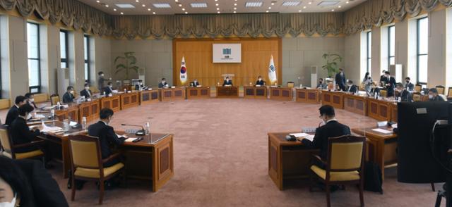 전국 지검장 회의가 11일 오전 서울 서초동 대검찰청에서 열리고 있다. 이날 회의에는 김오수 검찰총장과 박성진 대검 차장, 전국 지검장 18명 등이 참석했다. 서재훈 기자