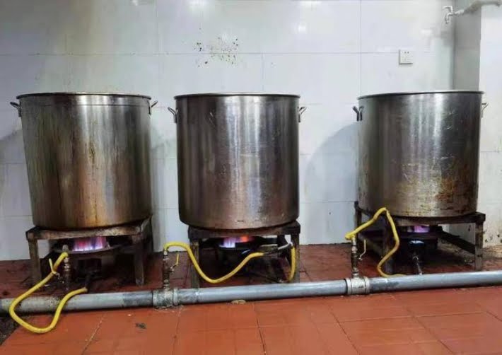 적발 당시 고객이 먹다 남은 훠궈와 잔반을 모아 3개의 큰 통에 넣고 조미료 등을 첨가해 끓여 식용유를 추출하고 있었다.