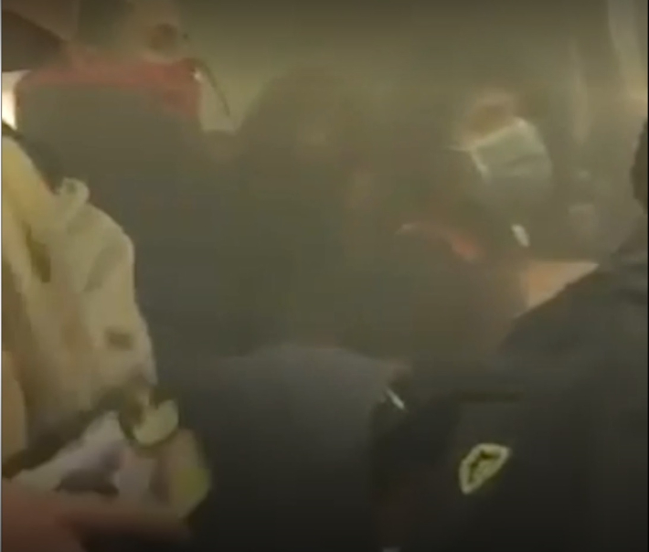 총격사건이 발생한 직후의 뉴욕 지하철 객차 내부 보습. 연막탄이 자욱하다. 트위터 캡처