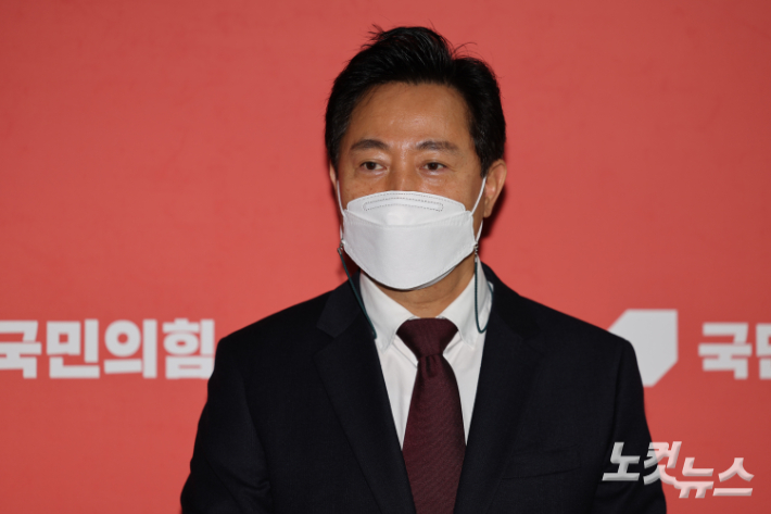 오세훈 서울시장이 8일 서울 여의도 국회에서 열린 국민의힘 제8회 전국동시지방선거 광역단체장 공천신청자 면접을 마친 뒤 취재진의 질문에 답변하고 있다. 윤창원 기자