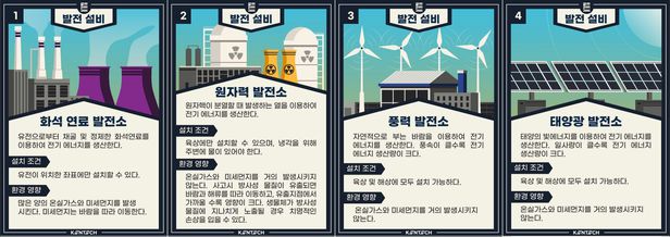 이어진 ‘환경 영향’ 항목은 더욱 노골적이었다. 원전에 대해서는 “사고 시 방사성 물질이 유출되면 바람과 해류를 따라 이동하고, 유출 지점에서 가까울수록 영향이 크다. 생물체가 방사성 물질에 지나치게 노출될 경우 치명적인 손상을 입을 수 있다”고 적었다. 그러면서 풍력·태양광 발전 설비의 환경 영향에 대해서는 “온실가스와 미세먼지를 거의 발생시키지 않는다”고만 적었다.