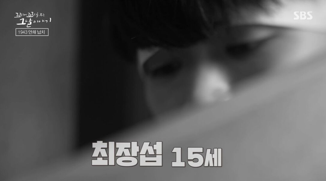 때는 1943년 1월, 전라북도 익산에 살던 15세 최장섭 군. 가난한 농부의 막내아들이었는데, 공부를 열심히 해서 우등상을 놓친 적이 없는 소년이야. 장섭이가 집에 있던 어느날, 마을 면사무소 직원 윤씨가 찾아 왔어. 다짜고짜 따라오라 하는 윤씨의 말에 장섭이는 영문도 모르고 일단 따라 나섰어. 장섭이가 군청에서 만난 군수는 장섭이를 훑어보더니 "얘는 너무 어린 거 아닌가?"라고 말했어. 그러자 윤씨는 "거기는 어릴수록 좋다"라며 알 수 없는 말을 했어.