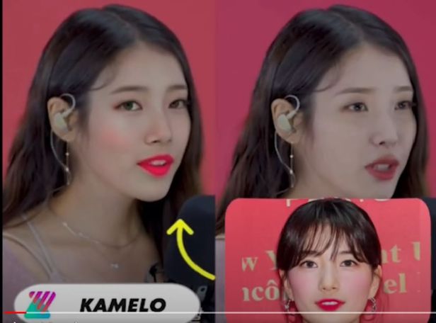 '카멜로'는 동영상에 다른 사람의 얼굴을 얹어 바꿀 수 있는 스마트폰 앱이다. 사진 오른쪽의 원래 동영상에 사진 아래의 얼굴을 합성하면 사진 왼쪽의 영상이 나온다./한서대학교 유튜브