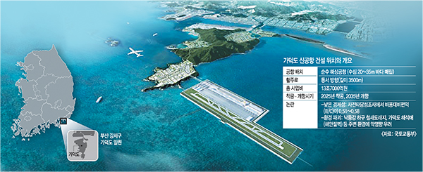 정부가 부산에 들어설 가덕도 신공항에 총 13조7000억원을 투입, 국내 최초 해상 매립공항으로 만든다는 계획을 확정했다. 하지만 당초 계획과 달리 개항 시기가 2035년으로 늦춰진 데다 경제성 저조, 환경 오염 등 많은 문제점이 해결되지 않은 상황에서 신공항 건설을 강행키로 해 졸속이란 비판이 제기된다. 새 정부 출범 이후 사업 추진 과정에서 적잖은 난항이 예상된다.