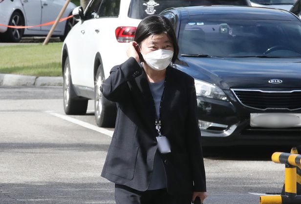 임은정 법무부 감찰담당관이 2021년 9월 8일 경기 정부과천청사 고위공직자범죄수사처(공수처)에 참고인 신분으로 소환조사 받기 위해 출석하고 있다. 공수처는 이날 임 감찰담당관을 상대로 윤석열 전 검찰총장의 '한명숙 모해위증교사 수사 방해 의혹'을 조사했다./뉴스1